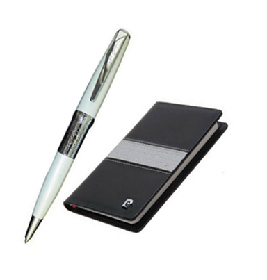 Набор: записная книжка + шариковая ручка.Ручка шариковая, латунь, лак, хром. Блокнот бумажный, мягкая картон. обложка в чехле из искуств.кожи
