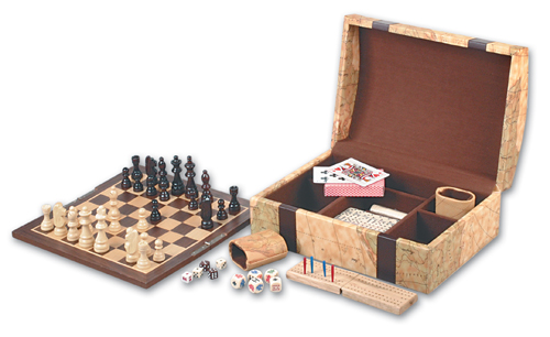 Набор игр \"6 в 1\" в сундуке ПВХ (шахматы, нарды, домино, шашки, криббедж, покер на костях), дерево, пластик, 31х22х120 см