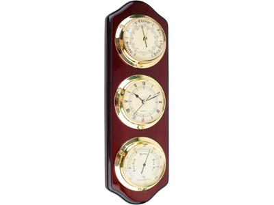 Для моряков информация о погоде очень важна. Поэтому в кают-компании, где собирается вся команда, как правило, висит погодная станция. Такая станция, выполненная из дерева и латуни, может стать украшением не только кают-компании, но и любого кабинета. Тем более, что информация о погоде важна не только морякам.