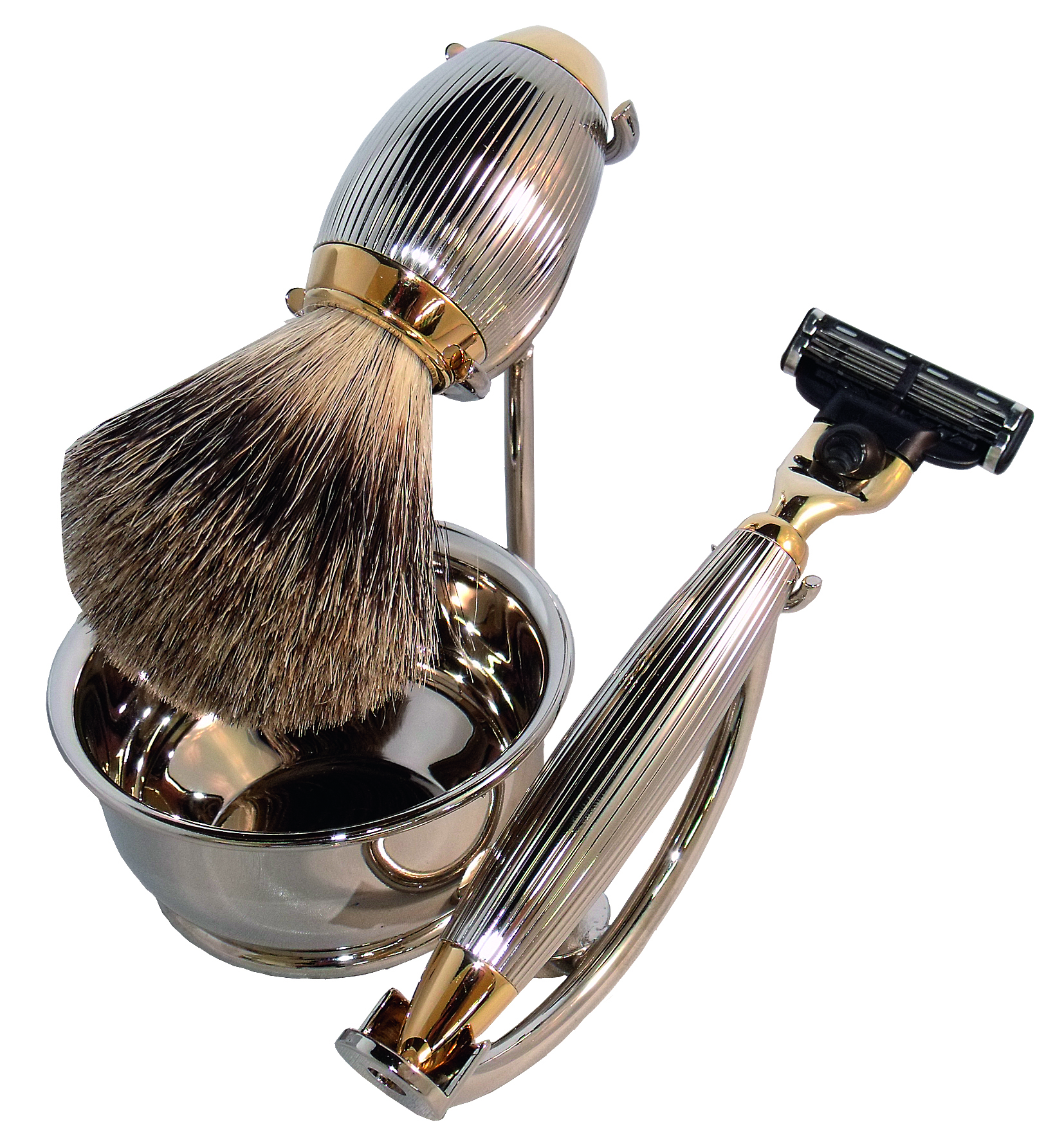 Бритвенный набор S.Quire: станок, помазок, чаша, подставка; золотисто-серебристый