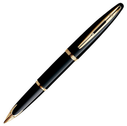 Перьевая ручка Waterman Carene Black Sea GT. Перо из чистого золота 18К, корпус и колпачок - лаковые, насыщенного черного цвета, детали дизайна: позолота, линия письма - средняя