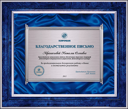 Каталог рекламных сувениров » Офис » Награды BrightAwards » Наградные плакетки Декоративная плакетка - рамка 15600.00 р + - Описание Рамка под синий мрамор с синим шелком и металлической вставкой в виде свитка. Артикул PFC-006 Метод персонализации Цифровая печатьРазмер изделия 41x35x2